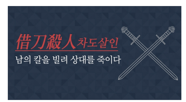 이처럼 계략을 잘 쓰면 적이나 제 3국의 힘과 재물등을 빌려 쓸 수가 있는데 이를 '차도살인'이라 칭합니다.