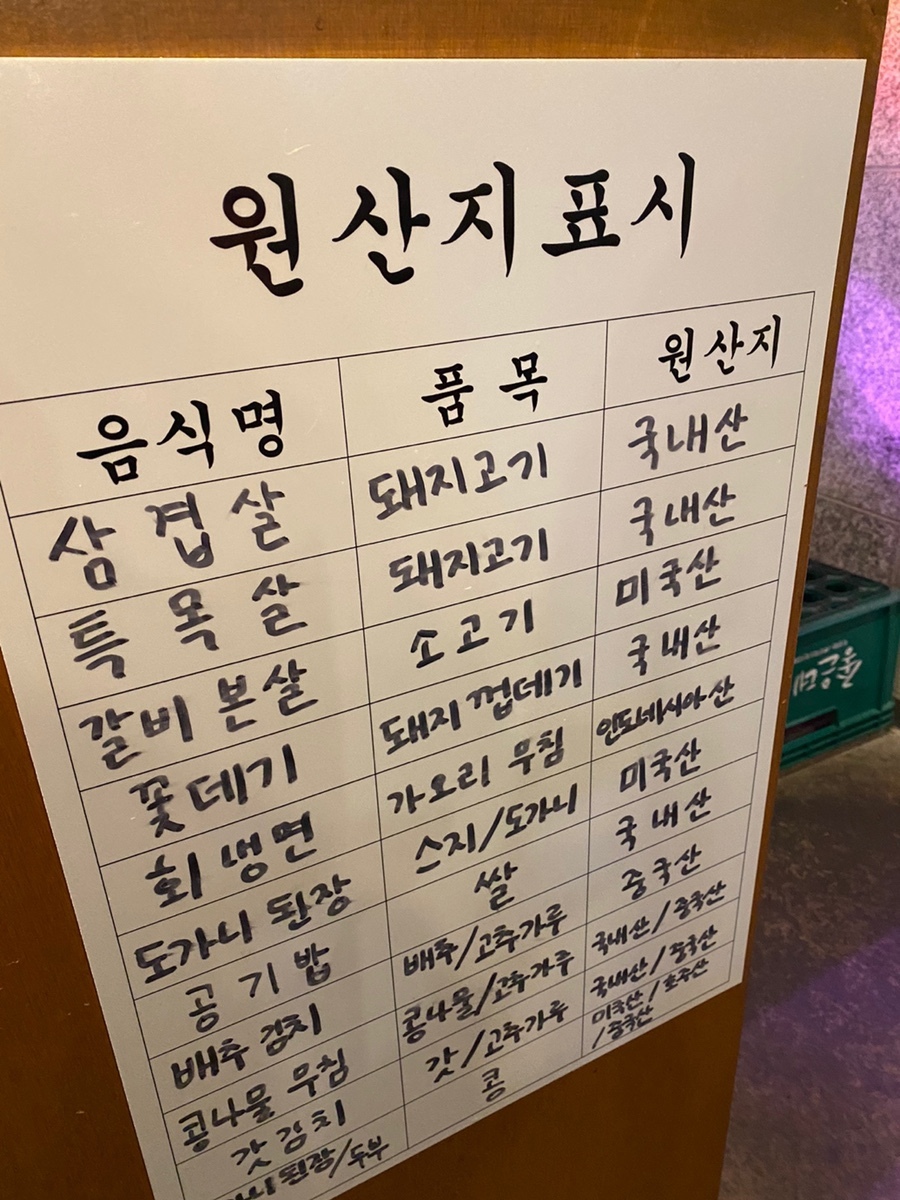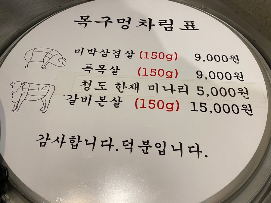 삼겹살 목살 갈비본살 딱 세종류 있네요.