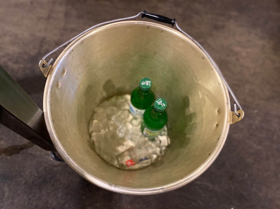 그리고 소주를 이렇게 다라이에 담아주네요.