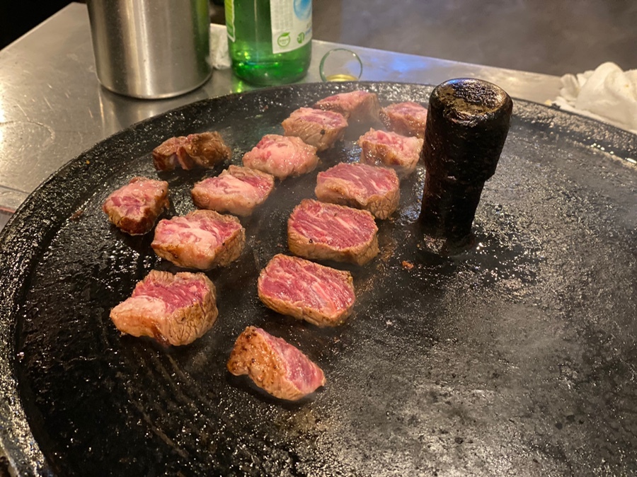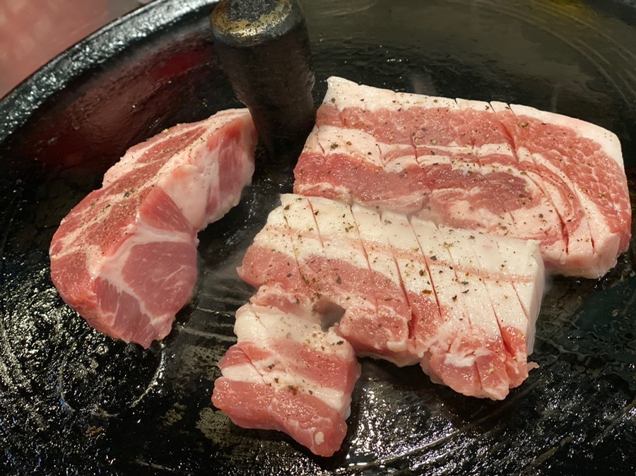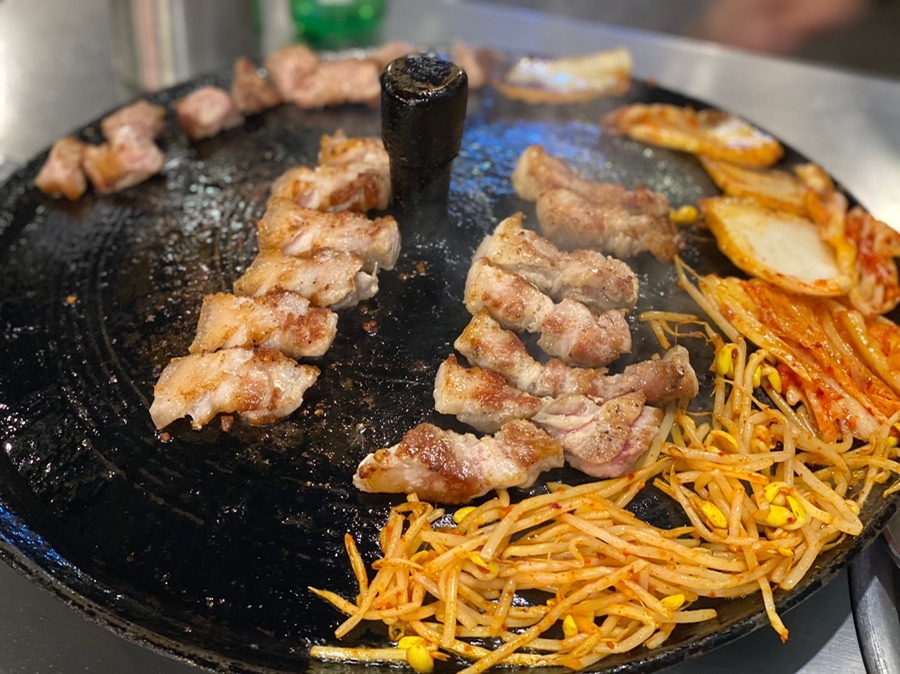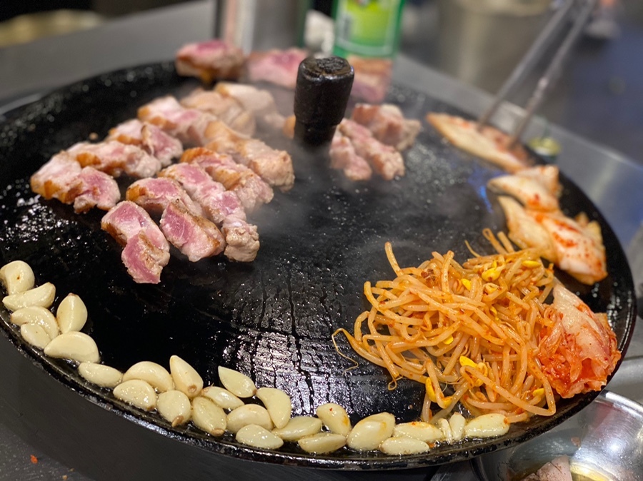 고기도 솥뚜껑에 구워주니 더 맛나보이네요.
