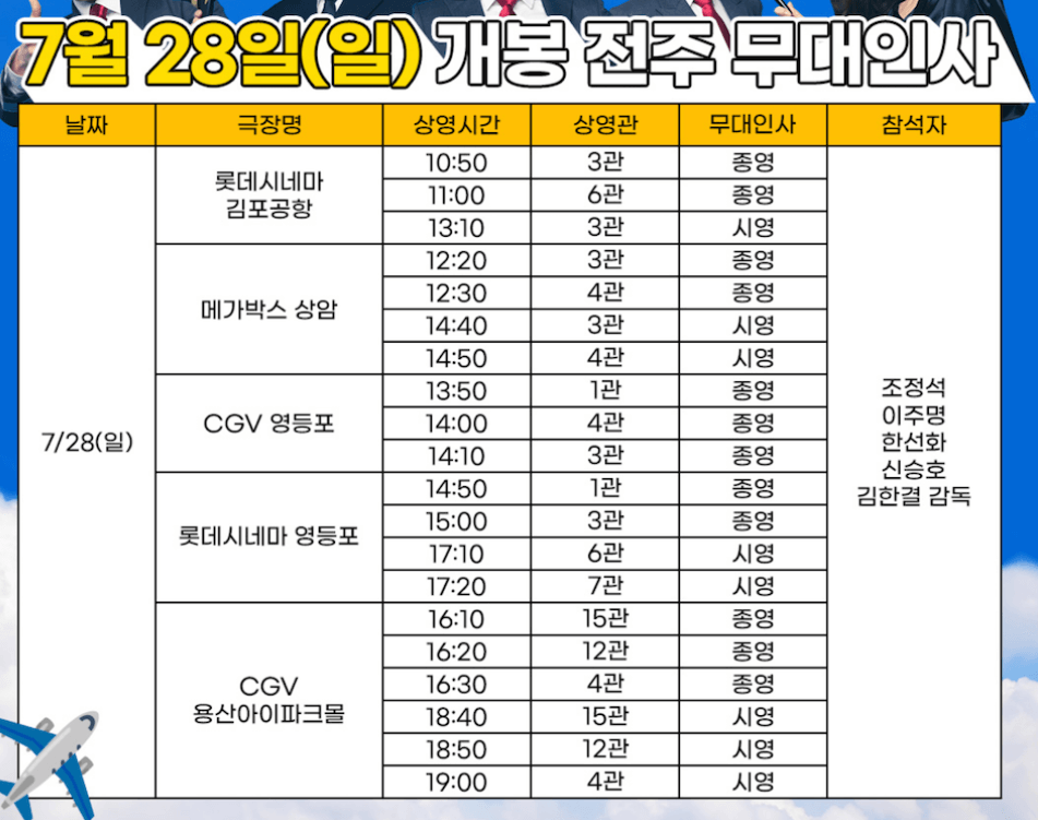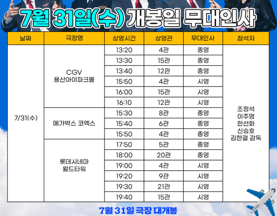 영화 파일럿의 무대인사는 아래와 같습니다.