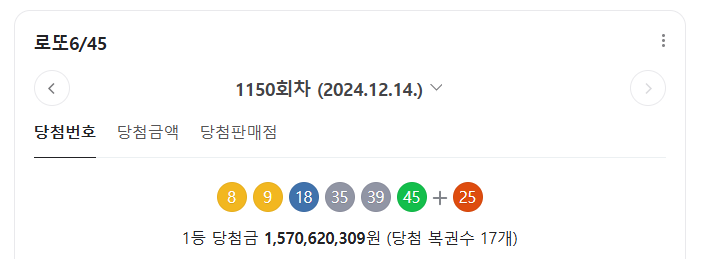 | 로또 1154회 당첨 예상번호 분석 알아보기 (8) | 2025.01.05 |