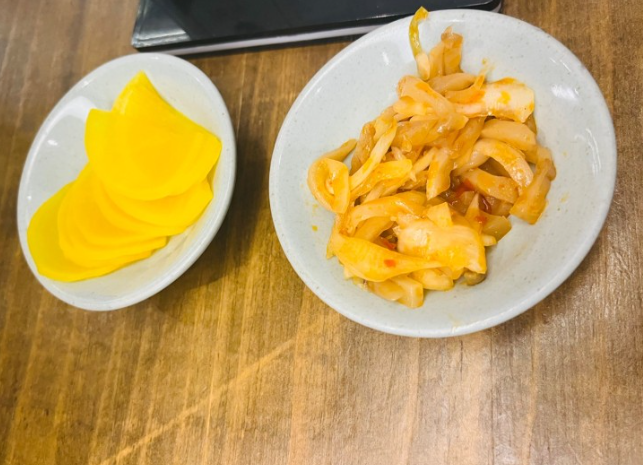 밑반찬은 특별할 것 없는 단무지와 양파무침찬이 나오네요.