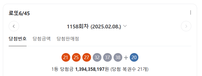 | 로또 1158회 당첨 예상번호 분석 알아보기 (40) | 2025.02.02 |