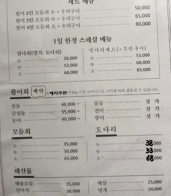 활어회와 모듬회도 구분되며