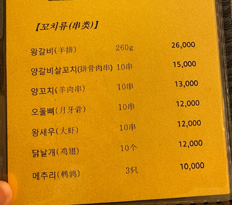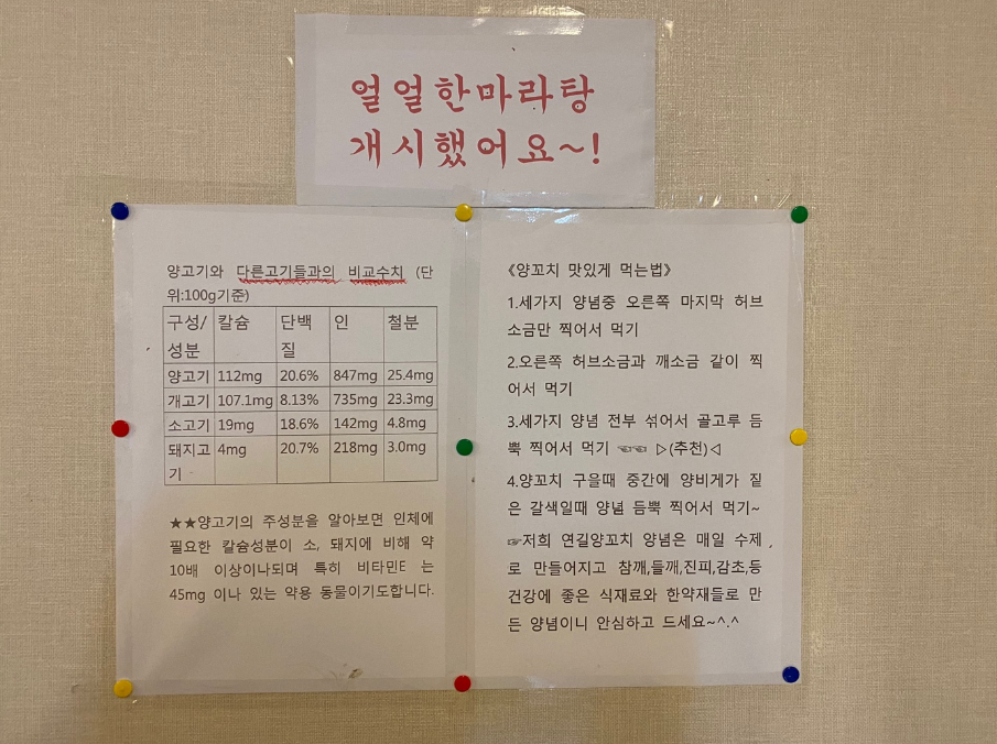 나중에 양꼬치가 맛이 뭔가 밋밋하다고 느껴진다네요.