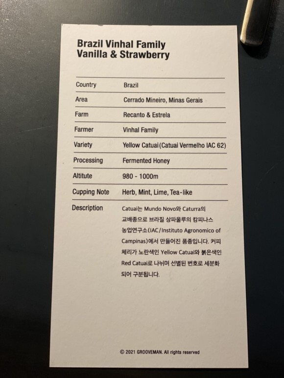 저는 브루잉 커피로 브라질 빈할 패밀리 바닐라 앤 스트로베리를 주문했고,