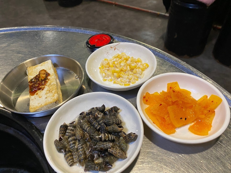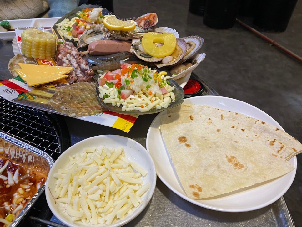 진짜 조개구이가 안보일정도로 푸짐하게 메뉴들이 쌓여있어요.