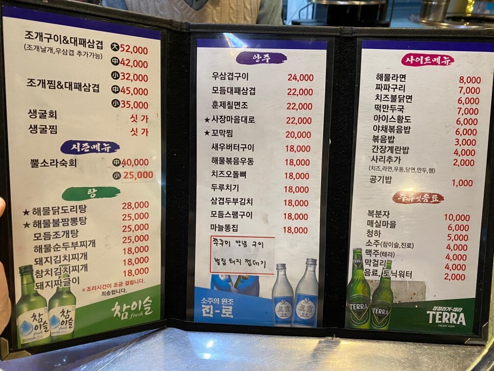 조개구이&대패삼겹가 시그니처 메뉴이며