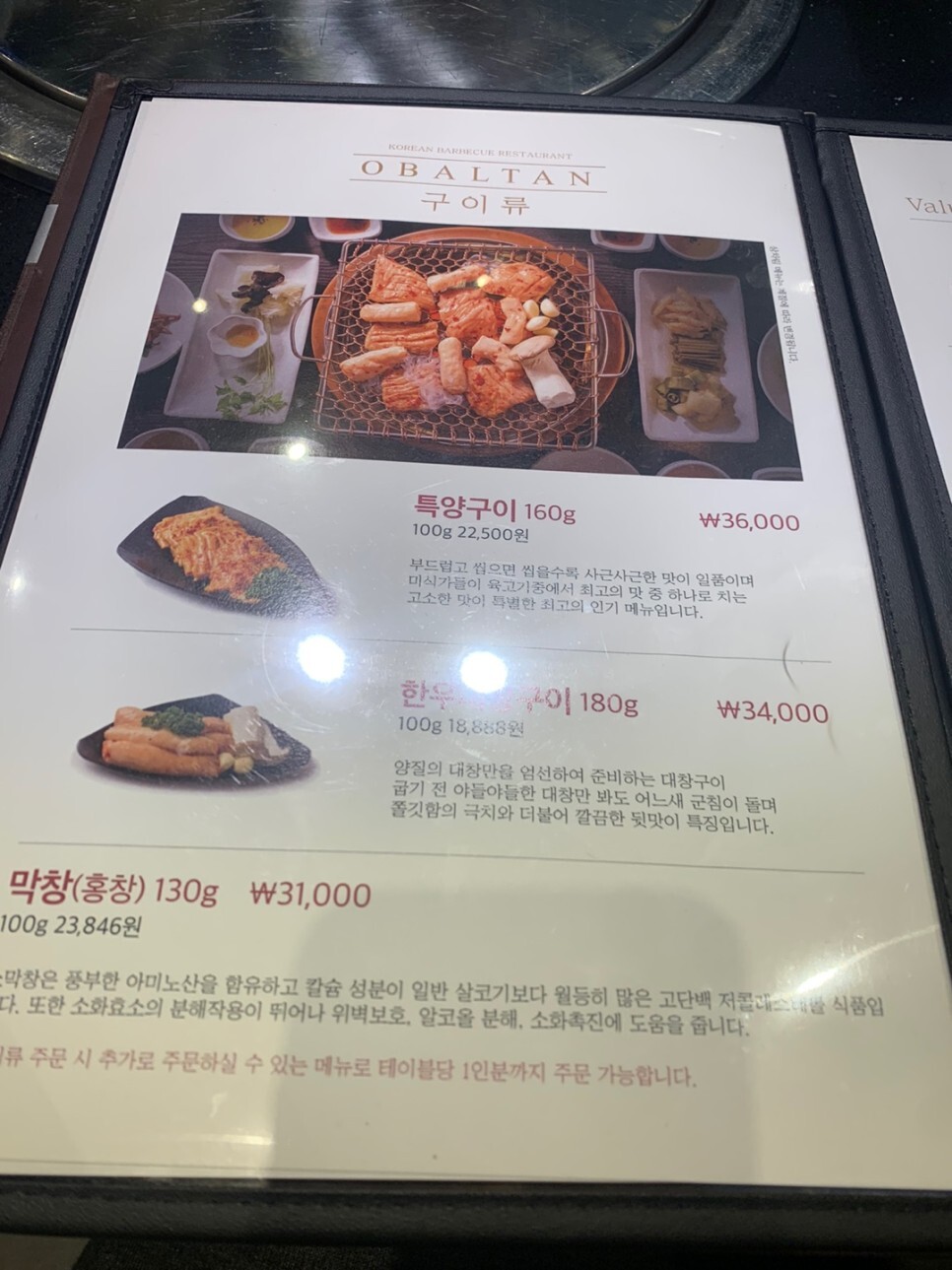 특양 막창등 다양한 부위들이 있어요.