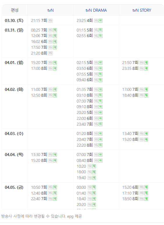 눈물의 여왕 재방송 편성표
